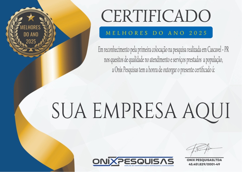 As empresas vencedoras de nossas pesquisas recebem este certificado como forma de reconhecimento e excelência em qualidade.